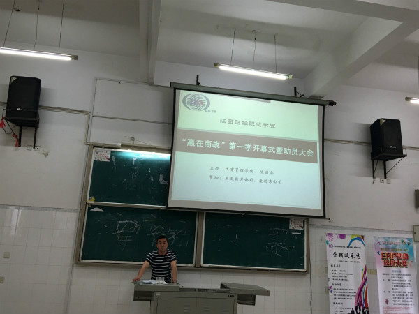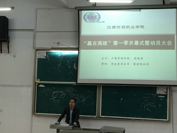 420日,工商管理學院在教學樓617教室召開了江西財經職業學院“贏在商戰”第一季系列活動開幕式暨動員大會。九江友信科技公司王超總經理、九江聚思味公司廖明強總經理、校團委青工書記葉睿老師、工商管理學院黨政班子、全體老師和來自工商管理學院、會計第一、二學院、經貿學院、本科部等院系的部分參賽同學參加了此次大會。