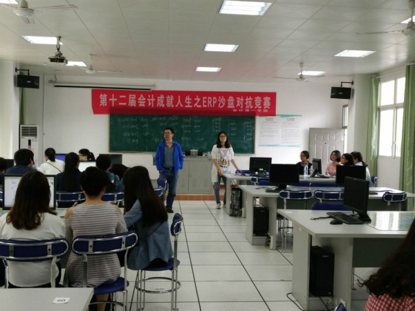 為進一步落實“四具備”人才培養目標,豐富校園文化生活,活躍學習氛圍,增強理論與實踐相結合,提高學生的動手操作能力,2016年6月4日和5日,會計第一學院在東區實訓樓ERP沙盤模擬對抗實訓室一和ERP沙盤模擬對抗實訓室三開展了第十二屆“以會計成就人生”系列競賽活動——ERP沙盤對抗競賽,來自我校本科部14、15級會計學專業和我院14級會計、會計(注冊會計師方向)專業的39個班級組隊參加了此次競賽活動。競賽分3個區進行,每區13組隊伍。