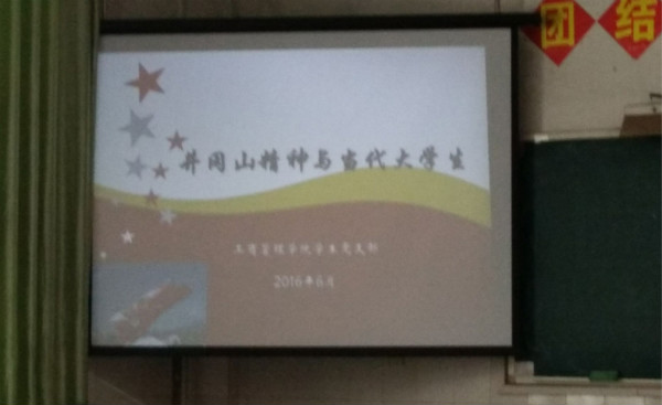 6月23日,學生黨支部在教學樓101教室開展了以《井岡山精神和當代大學生》為主題的“兩學一做”專題黨課學習教育活動。本次黨課由學生黨支部書記廖國臣主講,我院所有學生黨員及入黨積極分子參加。廖國臣簡要介紹了井岡山革命斗爭史及其歷史地位,重點闡述了井岡山革命斗爭中培育出的精神瑰寶—井岡山精神的內涵及當代大學生應如何發揚和踐行井岡山精神。
