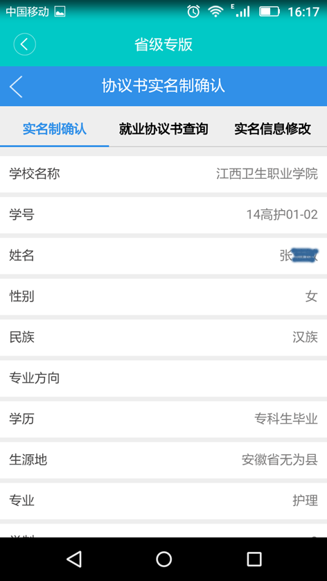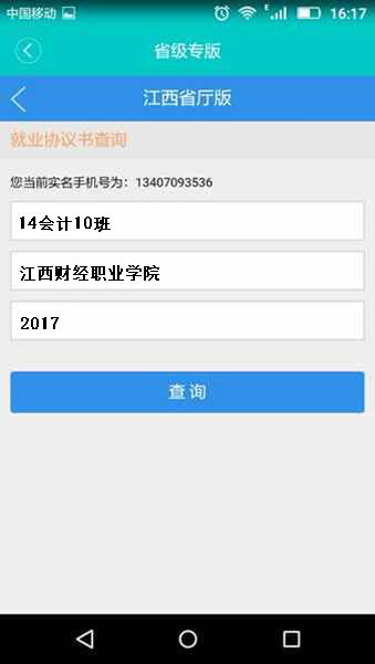 5、輸入學(xué)號(hào),學(xué)校名稱、畢業(yè)年份后點(diǎn)擊查詢,出現(xiàn)個(gè)人信息。