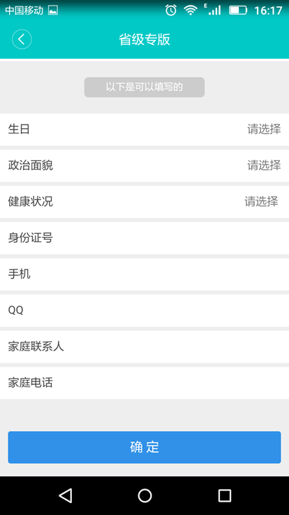 7、在個(gè)人信息頁(yè)面下半部,有一些信息需要同學(xué)們填寫(xiě),完成后點(diǎn)擊確定。