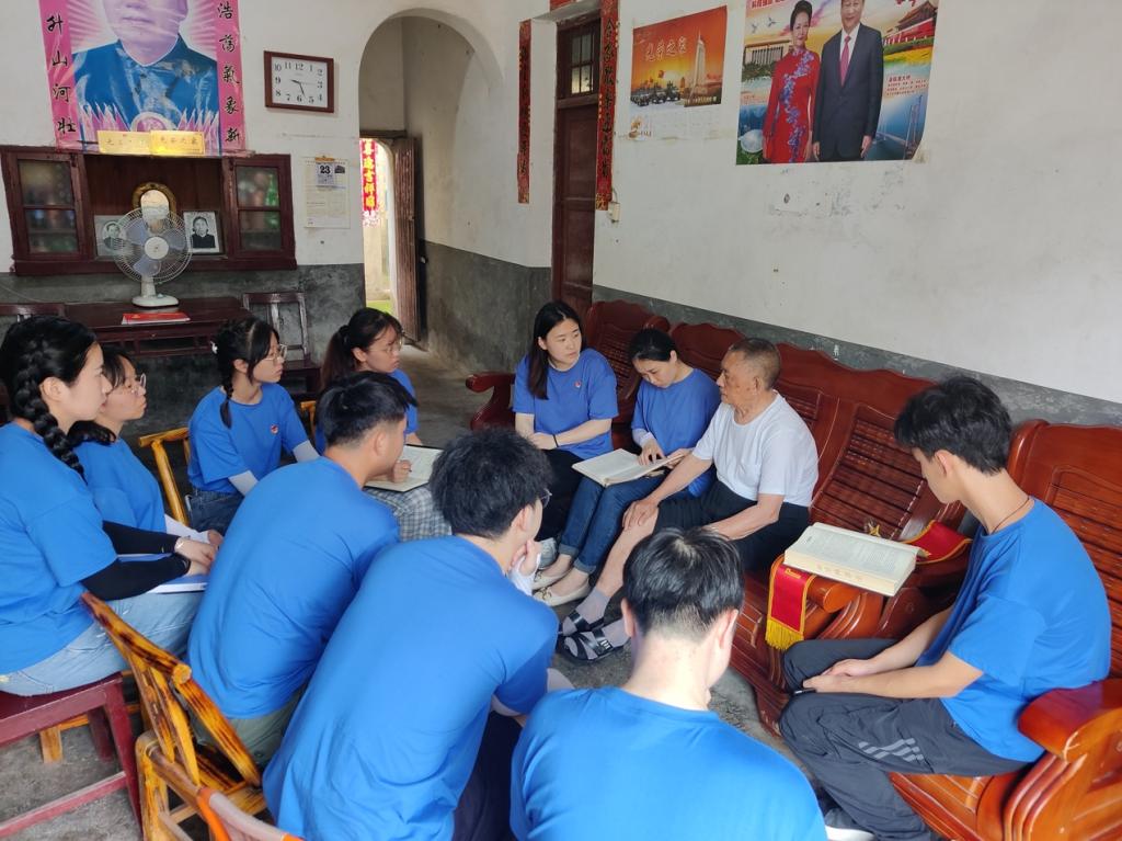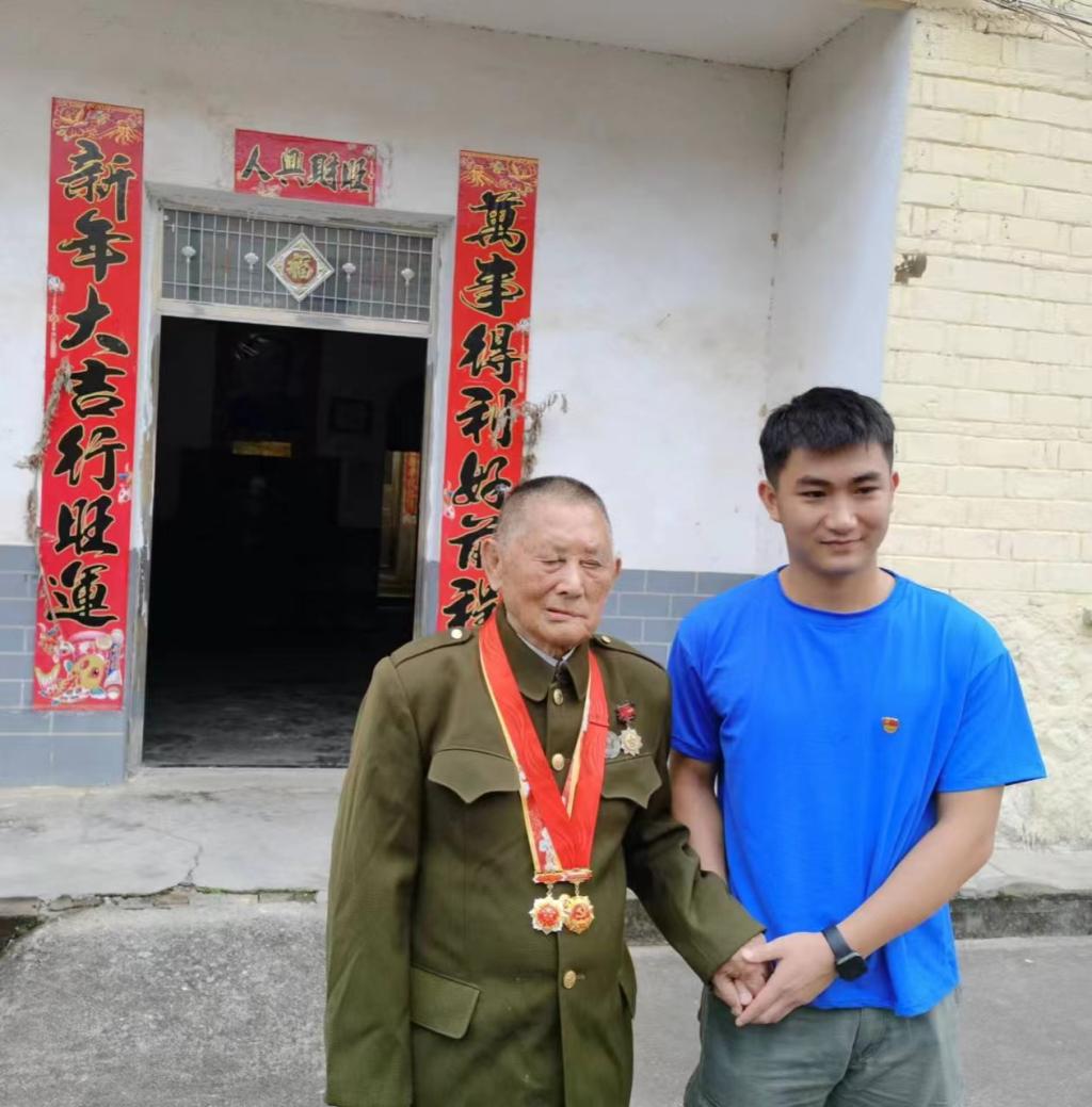中國青年網(wǎng)九江6月23日電 (通訊員 李娟) 為進一步弘揚革命傳統(tǒng),傳承紅色精神,6月23日,江西財經(jīng)職業(yè)學院“青春筑夢·三下鄉(xiāng)”社會實踐隊赴瑞昌市高豐鎮(zhèn)走訪“瑞昌市最美退役軍人”——革命抗戰(zhàn)老兵胡華純。青春筑夢隊一行12人帶著禮品來到老人家中,關心老人的身體狀況和日常生活,傾聽老人光榮的革命事跡,感受老人為國為黨為人民的革命精神。老人家對于青春筑夢隊的到來表示熱情歡迎,向我們激動地講述了其父胡子良烈士英勇事跡,深情地回憶起自己曾經(jīng)走過的革命道路。在我們的訪談中,老人也數(shù)次潸然淚下并說:“沒有共產(chǎn)黨,就沒有新中國,也就沒有我胡華純。”老一輩革命戰(zhàn)士始終不忘黨對自己教育和培養(yǎng)。