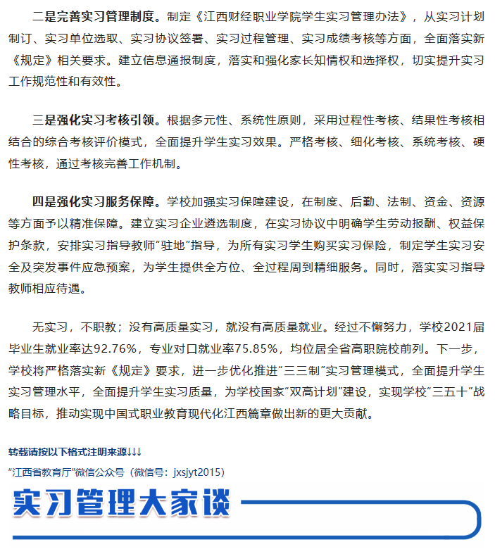 (江西省教育廳)實習(xí)管理大家談|劉彪文:構(gòu)建“三三制”大實習(xí)工作格局 促進(jìn)高質(zhì)量就業(yè)創(chuàng)業(yè)