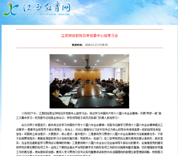 11月5日,江西教育網報道我校召開黨委中心組學習會。