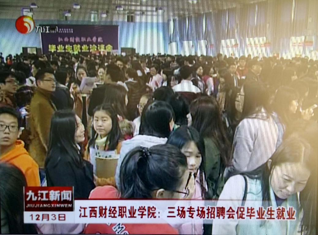 12月3日,九江電視電新聞頻道對我校連續舉辦三場大型招聘會促進畢業生就業情況進行報道。
