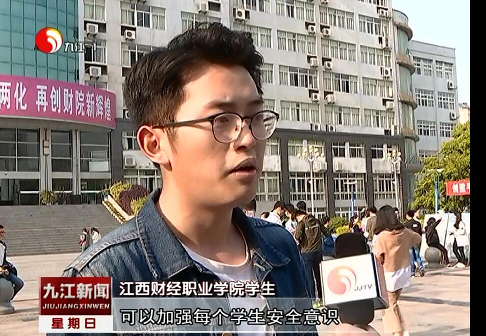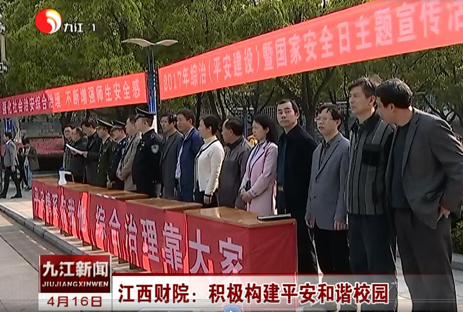 4月16日,九江電視臺新聞頻道報道我校開展綜治及國家安全日宣傳活動,積極構建平安和諧校園。
