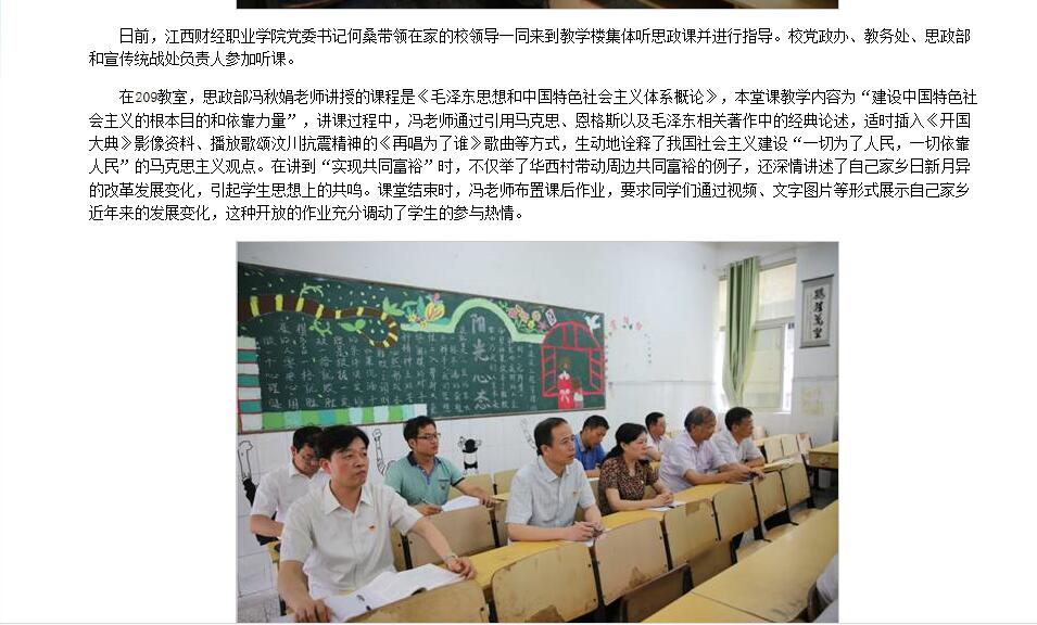 江西教育網:江西財經職業學院領導班子集體聽思政課