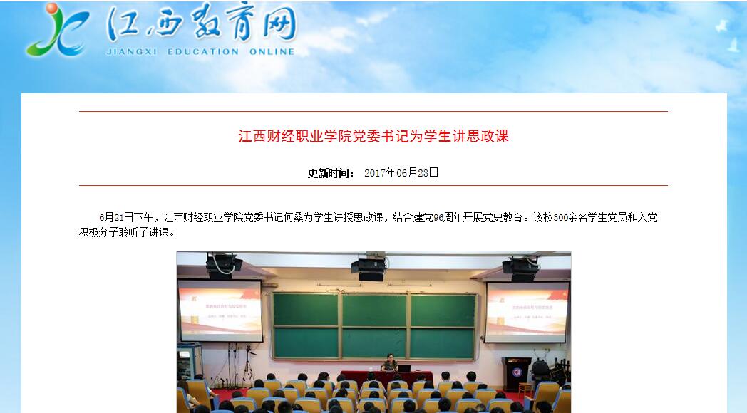 6月23日,江西教育網(wǎng)報(bào)道我院黨委書記何桑為學(xué)生講授思政課。