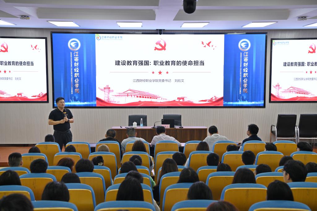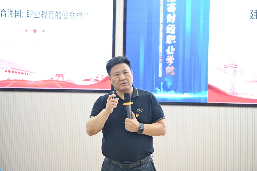 6月25日下午,校黨委書記劉彪文在七樓報告廳以《建設教育強國:職業教育的使命擔當》為題,為全校各班班長、團支書250余人講授了一堂生動的思政課。學工處、團委、創新創業實踐學院、馬克思主義學院等部門負責人到場聽課。