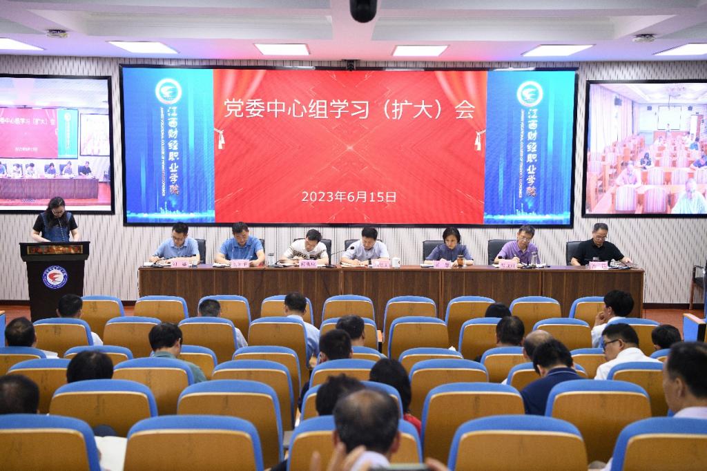6月15日,學校在綜合樓七樓報告廳召開黨委中心組學習(擴大)會,傳達學習習近平總書記重要講話精神并開展學習研討。黨委書記劉彪文主持會議,校領導班子成員、各部門負責人參加會議,南昌校區視頻參會。