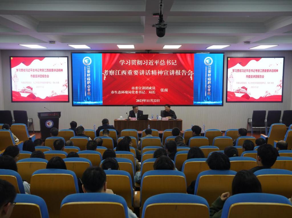 11月22日,學習貫徹習近平總書記考察江西重要講話精神市委宣講團在我校宣講,市委宣講團成員、市生態環境局黨委書記、局長張南作宣講報告。校黨委書記劉彪文主持報告會。全體在家校領導、中層以上干部、教師黨員以及學生代表300余人參會。
