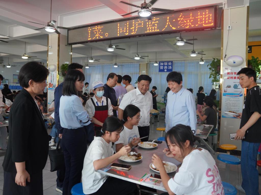 劉力群一行在潯陽校區教學樓和南區食堂實地查看了學校教育教學和食品衛生安全情況。隨后,一行人前往八里湖新校區,劉彪文和彭慧匯報了我校新校區總體建設以及學校搬遷入駐、開學、校園管理等情況。